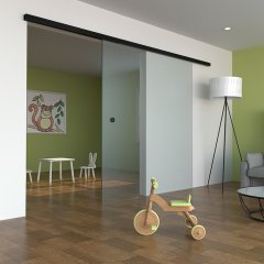 ドアの向こう側が透けて見える採光範囲の広いドアは、