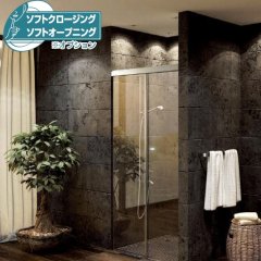 - ハンドルとヒンジ以外の余分なものが見えない、開放感のある浴室ガラスドアです。