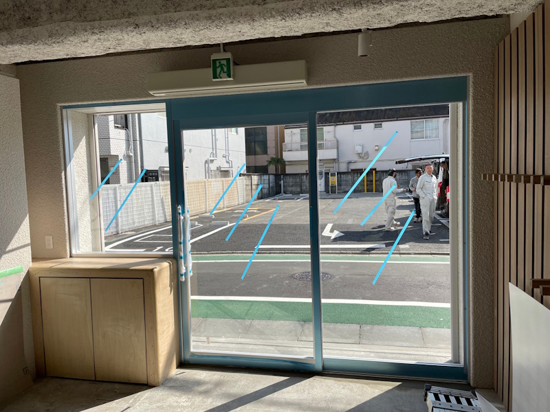 半自動ドア 半自動ドアを施工しました。 目黒区自由ケ丘の店舗案件(2024年3月15日) 半自動ドア SL W3300×H2200 半自動ドア施工・参考動画